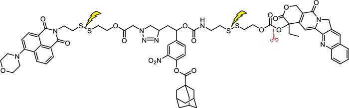 Zhang et al. designed an adamantine modified camptothecin/naphthalimide conjugate for loading on HA-CD via host-guest inclusion [133]. Owing to the unique traceless conjugation, CPT and Nap could only be released in presence of dithiothreitol (DTT), showing tumor-specific chemotherapy and photothermal therapy (Scheme 10). The tumor growth in the tumor-bearing mice has been efficiently inhibited under laser irradiation, demonstrating the combined photothermal-chemotherapy of cancer.
