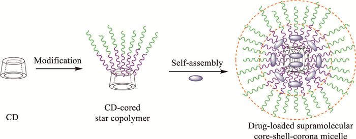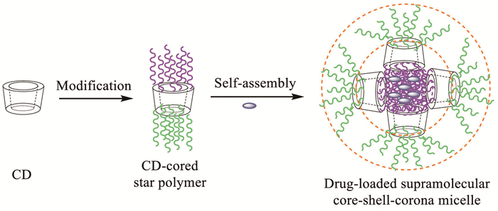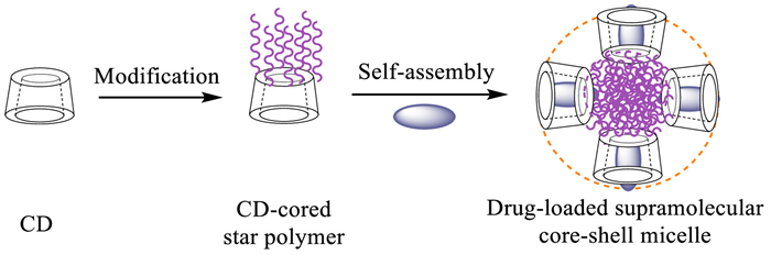 | Scheme 2. Drug-loaded supramolecular core-shell micelles self-assembled with CD-cored star polymer. | |