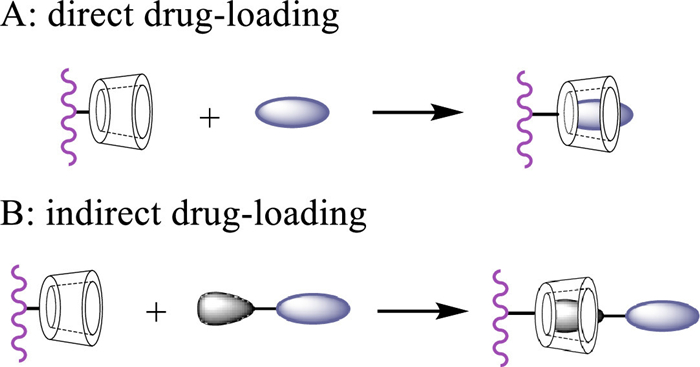 4.2.2. Indirect drug-loadingTo avoid the premature drug leakage and minimize the toxic side effects of the chemotherapeutic drugs on the normal cells and tissues, indirect drug-loading approach has been developed by designing the guest-drug conjugates as prodrugs containing high-affinity guest molecule for the host-guest complexation in the CD-containing carriers (Scheme 7B).