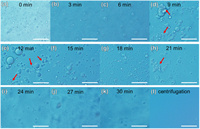 | Fig. 3. The optical images of water-in-oil emulsion after adding ASS170 and stirring for 0–30 min (a-k) and centrifugation (l). bar = 50 µm. | |