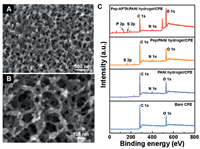 | Fig. 1. (A, B) SEM of the PANI hydrogel. (C) XPS spectra of the different modified electrodes. | |