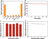 | Fig. 3. The signal suppression (%) of the different electrodes after incubation in artificial sweat for long time. | |