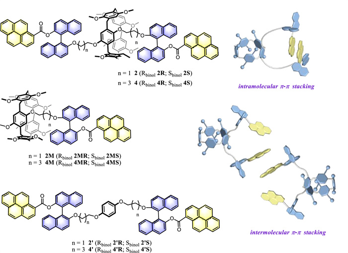| Scheme 1. The chemical structures of hybrid chiral BINOL-Py derivatives and schematic diagram of π-π stacking in BINOL-Py-substituted pillar[5]arenes. | |