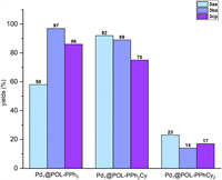From the catalyst pore size distribution curve (Figs. 3c and f), we found that the catalyst Pd1@POL-PPh2Cy showed a microporous or mesoporous structure, while Pd1@POL-PPh3 showed a larger pore structure, which can improve the mass transfer process. For this result, we believe that it is related to the number of vinyl functional groups of the catalyst itself, that is, more vinyl functional groups can expand the pores of the polymerized catalyst.