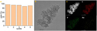 | Fig. 6. (a) Recycling test on Pd1@POL-PPh3 in hydrogermylation of 3ba. (b, c) The HR-TEM and EDS-Mapping of the used Pd1@POL-PPh3. | |