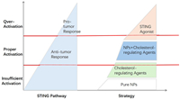 | Fig. 3. The figure illustrates the relationship between the activation level of the STING pathway and different therapeutic strategies. The vertical axis represents the level of STING activation, ranging from insufficient activation to proper activation and over-activation. The horizontal axis represents the intervention strategies. | |