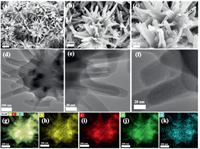 | Fig. 2. (a–c) SEM images of hydrangea-like BNC. (d–f) TEM images of hydrangea-like BNC. (g-k) EDS images of hydrangea-like BNC. | |