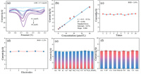 | Fig. 5. (a) SWV current signal of GCE and hydrangea-like BNC/GCE in different concentrations of AA. (b) Linear relationship between the AA concentration and current signal. (c) Current signal measured 10 times with the same electrode. (d) Current signal measured by 5 different electrodes. (e) Current responses in different inorganic ions and oxidizing agents. (f) Current responses in different organic substances. | |