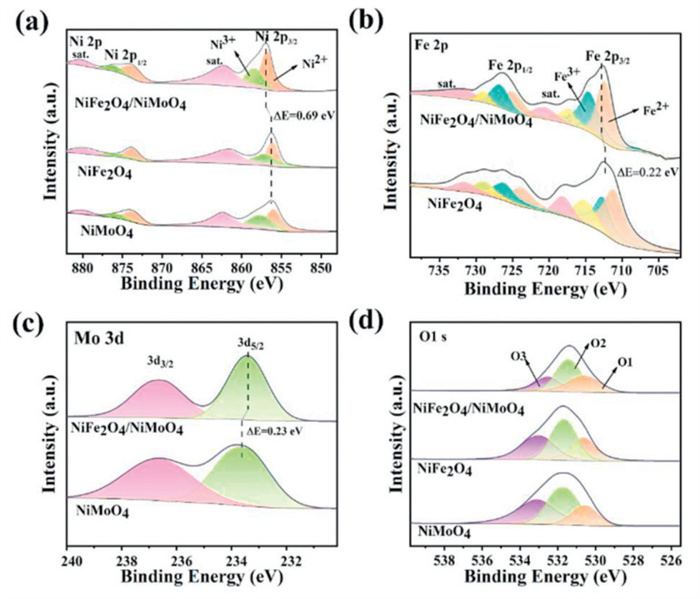 | Fig. 3. XPS spectra of (a) Ni 2p, (b) Fe 2p, (c) Mo 3d and (d) O 1s for different electrocatalysts. | |