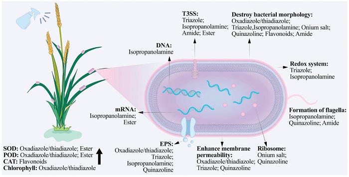 | Fig. 11. Schematic diagram of the mechanism of action of agricultural antibacterial agents. | |