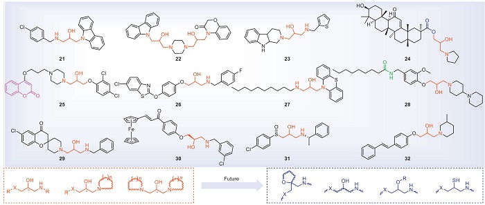 In the design of isopropanolamine antibacterial agents, the introduction of small groups on the hydroxyl group of isopropanol will not affect the antibacterial activity to a certain extent, such as using a tetrahydrofuran ring for the hydroxyl group, introducing a halogenated alkane at the hydroxyl group or replacing the hydroxyl group with an amino group. The introduction of thioether or amine group into one end of isopropyl alcohol has good antibacterial activity, among which the amino site is generally a nitrogen-containing heterocyclic ring with better biological activity, while the amino alkyl chain is less active. In addition, the other end of the isopropanolamine can be introduced into the nitrogen-containing heterocyclic ring, and ester groups, oxygen atoms or alkyl chains can also be introduced. The carbon chain of the isopropanolamine can also be introduced with alkyl chains or halogenated alkyl groups. Compounds containing isopropanolamine have S and R isomers, and there is insufficient evidence to show whether there is a difference in activity between the S and R isomers. In addition, when designing isopropanolamine antibacterial agents, we can draw on the isopropanolamine structures with antibacterial properties in medicine or the isopropanolamine structures with antifungal properties in pesticides, which will help us to discover compounds with higher activity more easily.