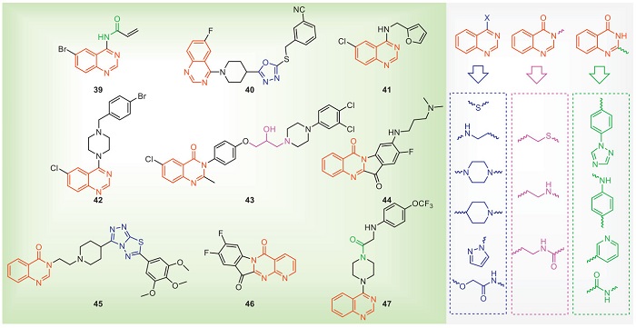 | Fig. 6. Structures and active skeletons of quinazoline compounds. | |
