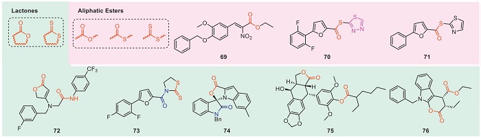 According to the differences in physical and chemical properties, esters are classified into lactones and aliphatic esters. When designing lactone structures with antibacterial activity, natural product structures such as coumarins and terpene-containing lactones can be considered for introduction. Introducing conjugated groups such as alkenyl or aromatic rings to the carbonyl moiety of the ester group may help enhance antibacterial activity.
