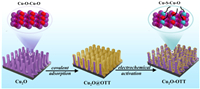 Preparation of Cu2O nanowires (Cu2O electrode): The dense Cu2O nanoneedles layers can synthesize by electrochemical oxidation coupled with heating dehydration strategy. Firstly, the cleaned Cu mesh as anode electrode was immersed in 3 mol/L KOH electrolyte, a platinum plate as counter electrode, and Ag/AgCl as reference electrode, respectively. A constant current of 11 mA/cm2 was applied for 350 s to obtain Cu(OH)2 nanoneedles. Afterward, Cu(OH)2 nanoneedles were dehydrated at 180 ℃ for 1 h, and the Cu2O electrode was prepared.
