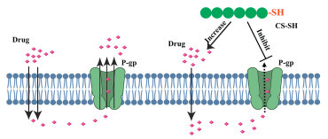 | Fig. 3. CS causing inhibition of P-gp efflux transporter. CS-SH inhibits the P-gp efflux transporter, thereby increasing the bioavailability of drugs. | |