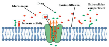 GlCN, a naturally occurring compound extensively present in the human body, especially in joint fluid, serves a pivotal role in the synthesis of cartilage, the dense connective tissue that cushions joints. This compound is also widely consumed as a dietary supplement, obtained either from shellfish or through synthetic production methods. Its primary use is to alleviate the discomfort associated with osteoarthritis and joint pain, attributed to its anti-inflammatory properties and its ability to assist in the regeneration of cartilage [144-147]. CS, closely related to GlCN, is comprised of GlCN and N-acetyl GlCN molecules, making it essentially a GlCN-based substance. This connection underlines the versatility and wide-ranging applications of GlCN in biomedical research and dietary supplementation. A particularly compelling aspect of GlCN’s functionality is its interaction with P-gp, a critical drug transporter protein that is ubiquitous in the GIT. P-gp plays an indispensable role in minimizing the absorption of drugs in the GIT and in the expulsion of potentially harmful foreign substances from the body, thus preventing their accumulation in cells and tissues [148-150]. This mechanism is essential for staving off pathological changes by precluding the buildup of xenobiotics. GlCN has been identified by our lab as a potent and direct activator of P-gp, enhancing the protein’s efflux capacity, which consequently diminishes the absorption of drugs by cells lining the intestine (Fig. 6). This reduces the overall availability of the drug in the body, without altering the levels of the P-gp protein itself. This unique attribute of GlCN positions it as an influential factor in the modulation of drug absorption and bioavailability.