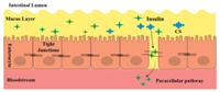 2.2. Tight Junctions modulationCS’s role in opening tight junctions is a pivotal aspect of its utility in drug delivery, especially for facilitating the transport of larger and more hydrophilic drugs across epithelial barriers. CS can modulate the tight junctions between epithelial cells in the intestinal mucosa, leading to increased paracellular transport of drugs and other molecules, facilitating the paracellular transport of drug molecules and nutrients. This effect is thought to be due to the ability of CS to interact with the negatively charged components of the tight junctions, such as claudins, zonola occludin-1 (ZO-1), and occludin, and disrupt their assembly and stability [65-68]. The interaction between CS and these tight junction proteins leads to the temporary modulation or opening of these junctions. This modulation reduces the barrier function of the tight junctions, thereby rendering the paracellular route, typically restrictive to larger molecules, more permeable (Fig. 2). This is particularly significant in the pharmaceutical field, as many drugs, including macromolecules like peptides, proteins, and nucleic acids, require effective transport mechanisms to cross these barriers and reach their target sites within the body. One of the most notable benefits of this mechanism is the enhanced paracellular transport it facilitates. By opening tight junctions, CS allows larger and more hydrophilic drugs, which usually cannot permeate through the cell membrane via the transcellular pathway, to be transported across epithelial barriers effectively [37,69].