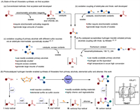 Traditional methods for thioester synthesis typically involve acylating thiols with carboxylic acid derivatives in the presence of activating reagents or catalysts, which often generate significant waste (Fig. 1A, a) [11-14]. Alternatively, oxidative coupling of aldehydes with thiols offers a more efficient route, through it generally requires excess oxidants (Fig. 1A, b) [15,16]. While primary alcohols are abundant in natural products and commodity chemicals, making them ideal starting materials for constructing complex molecular scaffolds [17-19], their use in thioester synthesis has been sporadically explored, and generally demands excess oxidants (Fig. 1A, c) [20,21]. A recent advancement by the Milstein group introduced a more sustainable approach using a ruthenium-catalyzed acceptorless hydrogen transfer to form thioester from primary alcohols and thiols (Fig. 1A, d). However, this method requires a high temperature (150 ℃) probably due to the reversible nature of the reaction [22,23]. Additionally, thiols are malodorous, unstable, and have a strong affinity to transition metal catalysts, making them less ideal as sulfur sources.