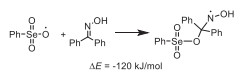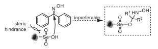 Although the reactions of supported Se catalytic species with oximes were generally less favorable due to the significant steric hindrance imposed by the bulky carbon support (Eq. 2), they could still proceed through free radical mechanisms. This is because the intermediate free radicals exhibited higher reactivity compared to the corresponding anions. For example, quantitative calculations revealed that the addition of the PhSeO3- anion to ketoxime 1a released 16 kJ/mol of energy. In contrast, the analogous reaction involving free radicals released 120 kJ/mol of energy, providing a significantly stronger driving force for the transformation (Eqs. 3 vs. 4).