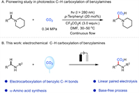 | Fig. 1. Background and introduction. (A) Pioneering study in photoredox C—H carboxylation of benzylamines. (B) This work: electrochemical C—H carboxylation of benzylamines. | |