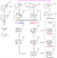 | Fig. 1. Previously proposed and herein experimentally supported biosynthetic mechanisms of mangicdiene (1). | |