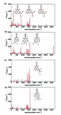| Fig. 4. The reorganization energies (λ, cm−1) as a function of normal modes (cm−1) for m-NH2 (a), p-NH2 (b), m-NAc (c) and p-NAc (d). The dominant vibration modes with large kic values are also shown. | |