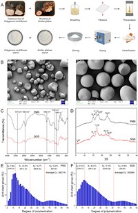 | Fig. 1. Flowchart of the starch extraction process (A), SEM images at 1000× magnification (B), FT-IR spectra (C), X-ray diffraction patterns (D), CLD (E, F) of PMS and SGS. | |