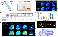 | Fig. 1. High-resolution AFADESI scanning strategy and condition optimization. (A) Fine probe design and point-by-point rasterized ablation scanning (RAS). (B) MSI of cerebellum under applying different ratios of ACN/H2O as spray solvents. (C) Optical images of the scan widths at different spray solvent flow rates. (D) Ion intensities at m/z 146.0446 and m/z 309.2797 at different spray solvent flow rates. (E) MS images of the distribution of different ions in the cerebellum at 40 µm and 100 µm steps. (F) Individual pixel size in the image at 40 µm step. (G) Nissler stained the image of the cerebellum. | |