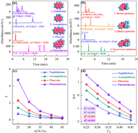 There has a good linear relationship between ln k and 1/T for NBs and PAHs (Figs. S9c and d in Supporting information). The positive slope and negative ΔH indicate that the separation of NBs and PAHs on the Ca-MOF/COF@SiO2 is an exothermic process (Table S11 in Supporting information), as well as low temperature is beneficial for the retention of analytes.