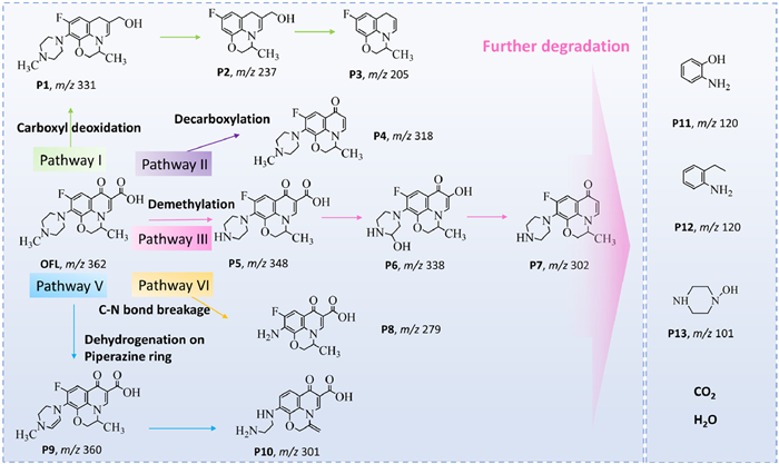 | Fig. 7. Possible intermediates and proposed degradation pathways of OFL in Si-O-C/PMS system. | |