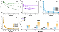 | Fig. 4. (a) MNZ, (b) ATZ, (c) BPA, (d) PE in the Si-O-C/PMS system. (e) The kobs of MNZ, ATZ, BPA, PE degradation by different PMS dosage. Catalyst dosage: 0.1 g/L; PMS dosage: 0.5 mmol/L, 1 mmol/L, 2.0 mmol/L, 3.3 mmol/L; Pollutant concentration: 10 mg/L. | |