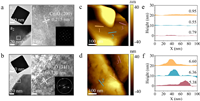 | Fig. 1. Morphologies and structural characterization of the prepared catalysts. HR-TEM images of (a) Cu2O and (b) CO–Cu2O. AFM images of (c) Cu2O smooth surface and (d) CO–Cu2O, showing nanoparticle formation after CO induction. Extracted line profiles for (e) Cu2O and (f) CO–Cu2O. | |