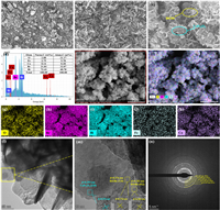 | Fig. 2. SEM images of (a) CoFe2O4, (b) BiOBr, (c) CoFe2O4/BiOBr. (d) EDS and (e-k) mapping, (l) TEM, (m) HRTEM and (n) SAED diagram of CoFe2O4/BiOBr. | |