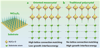 | Scheme 1. The epitaxial growth of (a) oriented mesocrystalline NiCo2O4 with highly connected and matched interfacial lattices (present work) and (b) traditional polycrystalline NiCo2O4 without highly connected and matched interfacial lattices. | |