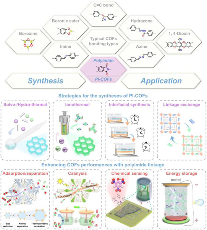 | Scheme 1. Schematic illustration of the synthesis strategies and applications of PI-COFs. | |