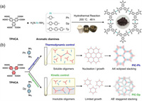 Polyimide (PI) polymers refer to a class of high-temperature polymers with imide rings (−CO−NR−CO−) in the main chain [1]. Although the synthesis of PI was first reported in 1908, it was not until the early 1960s that a successful commercial route to high-molecular-weight PI was first patented by DuPont. PI polymers are formed through a polycondensation reaction between dianhydride and aromatic amine monomers, consisting of electron-donating (amine) and electron-accepting (anhydride) groups within a single conjugated skeleton, which enables both intermolecular and intramolecular charge transfer [2]. Thanks to the uniqueness of the PI structure, compared with other polymer materials, the presence of multiple imide bonds enables the PI polymers to withstand high-temperature environments (exceeding 400 ℃) and offer exceptional mechanical strength (seven times stronger than steel) along with chemical stability and reversible electron transfer property, making them applicable in the aerospace, separating membranes, microelectronics, or semiconductor fields [3-7]. In the latest 2000s, amorphous but intrinsically microporous aromatic PIs were prepared with spirobifluorene units as a structure-directing motif [8-10]. Even though microporous PI polymers show good thermal stability, their applications are still limited, primarily due to their low specific surface area, non-uniform pore size and unclear structures. If the crystallinity and porosity could be combined into PI polymers to extend the field of crystalline materials, more advanced functions might be introduced. Therefore, crystalline and porous PIs urgently need to be explored to bring new insights into this field.