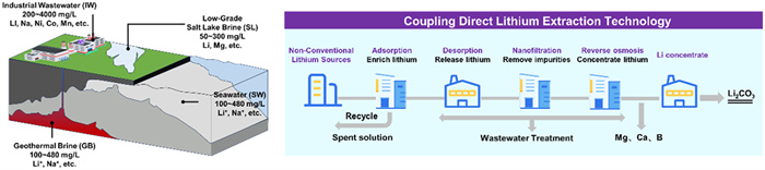 | Fig. 3. Schematic of non-conventional lithium resources and coupled direct lithium extraction technologies. | |
