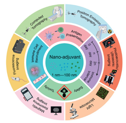 Their application extends to multimodal imaging, a technique that visually tracks antigen distribution in vivo and aids in the refinement of adjuvant properties, spearheading the progress of precision medicine [21-23]. These imaging techniques provide real-time monitoring of immune engagement and vaccine dissemination, which are key to evaluating safety and efficacy. Consequently, this investigation examines the multifaceted roles of nanoadjuvants, from their structural integration with imaging agents to their contribution to immune response optimization and safety assessment, culminating in their potential to unify diagnostic and therapeutic modalities.