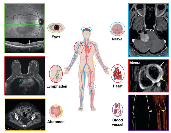 Vaccination can cause multisystem complications such as cardiovascular, neurologic, vascular, abdominal, LN, cutaneous, and ocular complications. Imaging modalities (Fig. 6) such as cardiac ultrasound, cardiovascular magnetic resonance imaging (CMR), CT, MRI, single-photon emission computed tomography (SPECT) and PET-CT, play essential roles in diagnosing and evaluating these vaccine-related complications [71-76]. This section (3.5.1–3.5.6) is described in more detail in Supporting information.