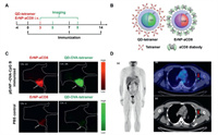 | Fig. 5. Immunization intervals for imaging tracer adjuvants. (A) Immunization and imaging schedule. (B) Schematics of a QD functionalized with a P3 coating and conjugated to a biotinylated H-2Kb chicken ova 257–264 SIINFEKL to form a QD-OVA-tetramer (left) and ErNP functionalized with a P3 coating and conjugated to a CD8 diabody (right). (C) Representative wide-field NIR-IIb molecular images from one of three mice bearing E.G-7 tumors immunized with pErNP-OVA-CpG B, recorded 48 h after i.v. Reproduced with permission [67]. Copyright 2023, Springer Nature. (D) A 48-year-old male patient was diagnosed with pT3b pN0, malignant melanoma, and a follow-up scan was performed. Image (a) shows the maximum intensity projection of the patient's scan. Images (b, c) show metabolically active axillary LNs, on the same side as the mRNA vaccine, taken one week before the PET-CT examination, raising the suspicion of disease progression (marked with an arrow). Reproduced with permission [68]. Copyright 2022, Multidisciplinary Digital Publishing Institute (MDPI). | |