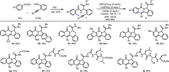 | Scheme 2. The combination of the Ugi reaction and C—H activation/annulation. | |