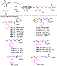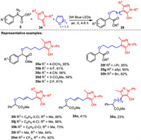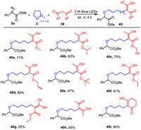 | Scheme 12. Visible-light-initiated three-component reactions of diazoalkanes, alkynes, and cyclic ethers. | |