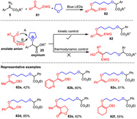 | Scheme 28. Visible light-induced regioselective O-alkylation of 1,3-dicarbonyl compounds with diazoacetates and cyclic ethers. | |