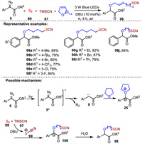| Scheme 33. Visible-light-initiated multi-component reaction to access organic thiocyanates. | |