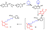 The possible mechanism for this three-component reaction is shown in Scheme 8. First, under the irradiation of blue light, α-diazoester generated carbene intermediate 8, which was trapped by 1,4-dioxane to gain oxonium ylide intermediate 9. Next, the subsequent nucleophilic addition of azauracil to oxonium ylide intermediate 9 afforded carbon anion intermediate 18. Finally, the intramolecular hydrogen transfer of 18 produced three-component product 17.