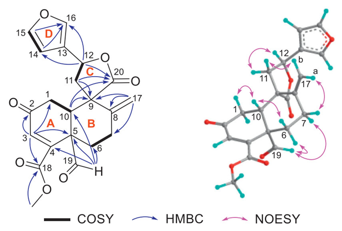 | Fig. 2. Key 2D NMR correlations of compound 1. | |