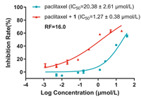 | Fig. 7. Multidrug resistance reversal activity of compound 1 against the HCT-15/Taxol cells. The RF is determined as the ratio of the IC50 value of paclitaxel to the IC50 value of paclitaxel combined with compound 1. Data represent mean ± standard deviation (SD) of three independent experiments. | |