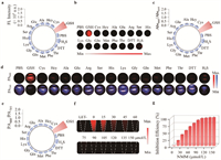 | Fig. 3. (a) NIR-Ⅱ FL920 intensity, (b) NIR-Ⅱ FL images, (c) Abs880/Abs695, (d) PA880/PA705 ratio and (e) the corresponding PA images of LET-14 (10 µmol/L) after incubation with various amino acids and hydrogen sulfide for 30 min in DMSO/PBS (v/v = 2/3, pH 7.4). (f) NIR-Ⅱ FL images of LET-14 (10 µmol/L) with the addition of GSH (50 µmol/L) before incubation with different concentrations of NMM (0-150 µmol/L). (g) The corresponding NIR-Ⅱ FL920 inhibition efficiency. Data are presented as mean ± standard deviation (SD) (n = 3). | |