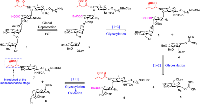 | Fig. 2. Retrosynthetic analysis of the P. aeruginosa serotype O3 O-antigen tetrasaccharide 1. | |