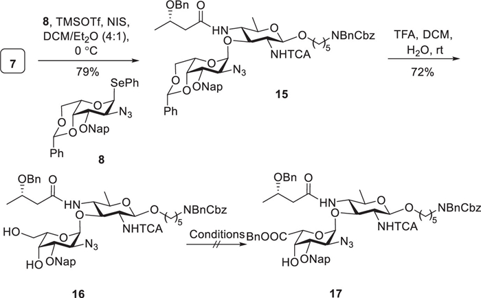 | Scheme 2. Attempts to synthesize disaccharide acceptor 17. | |